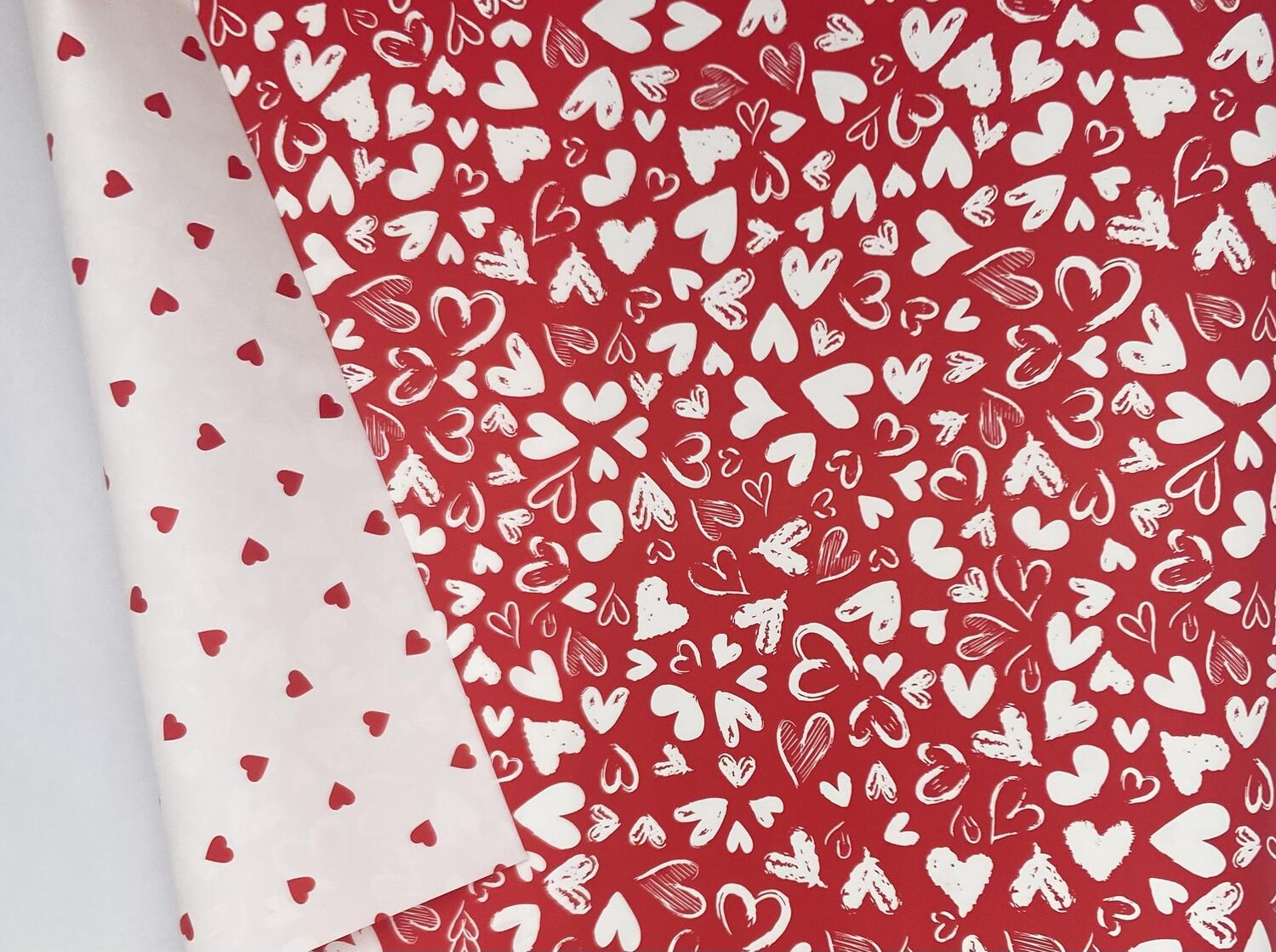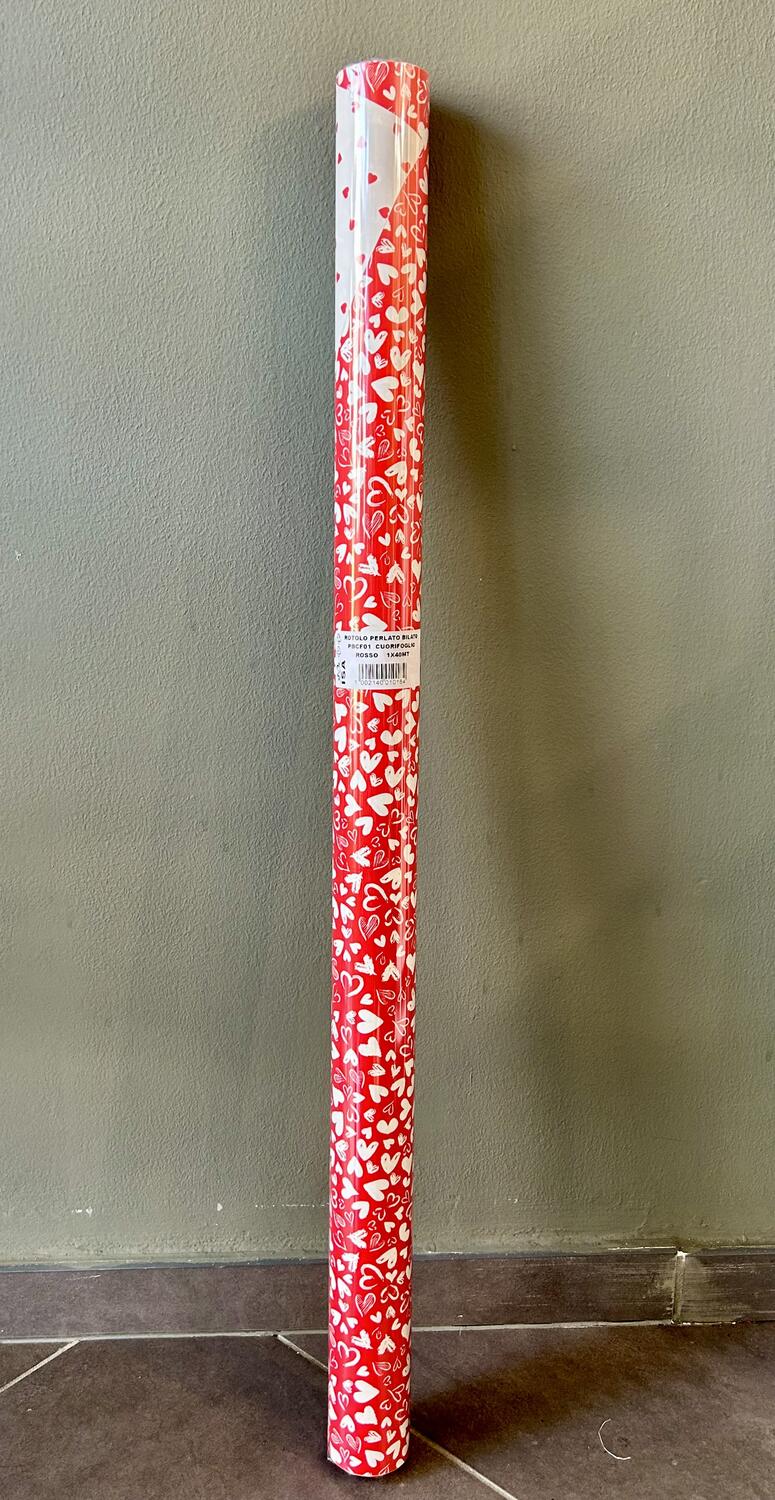 ROTOLO PERLATO DISEGNATO H. 1 X 40 METRI PBCF01 CUORIFOGLI ROSSO